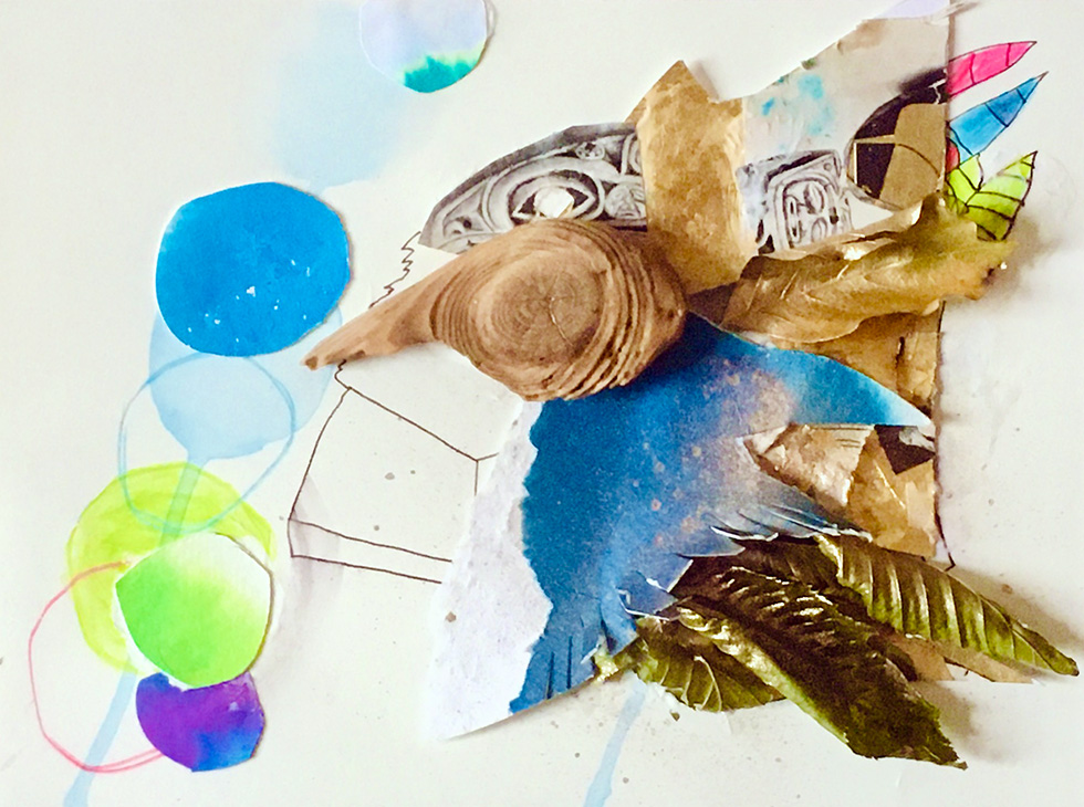 HUM, 2023, Mixed-Media-Collagen, 30 x 40 cm / 20 x 30 cm / 20 x 20 cm